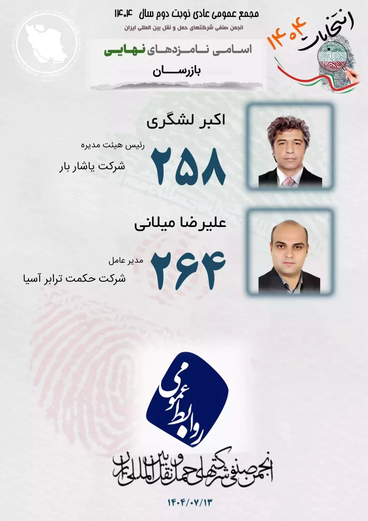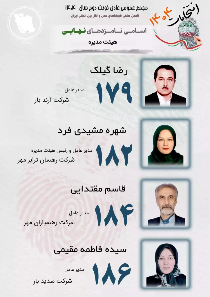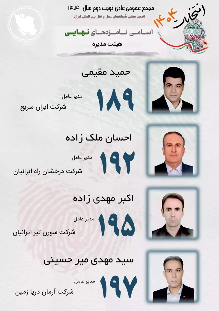 انتخاب شایسته شما عزیزان به عنوان نامزدهای هیأتمدیره و بازرسان انجمن را صمیمانه تبریک عرض میکنیم. حضور جمعی شما در این عرصه، نشان از تعهد، تجربه و دغدغهمندی نسبت به آینده انجمن دارد.